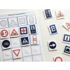 Dopravní značky děti baví. Tento laminovaný strukturovaný úkol je zaměřený na geometrické tvary. Děti přiřazují podle tvaru obrázek dopravní značky ke správnému geometrickému tvaru.