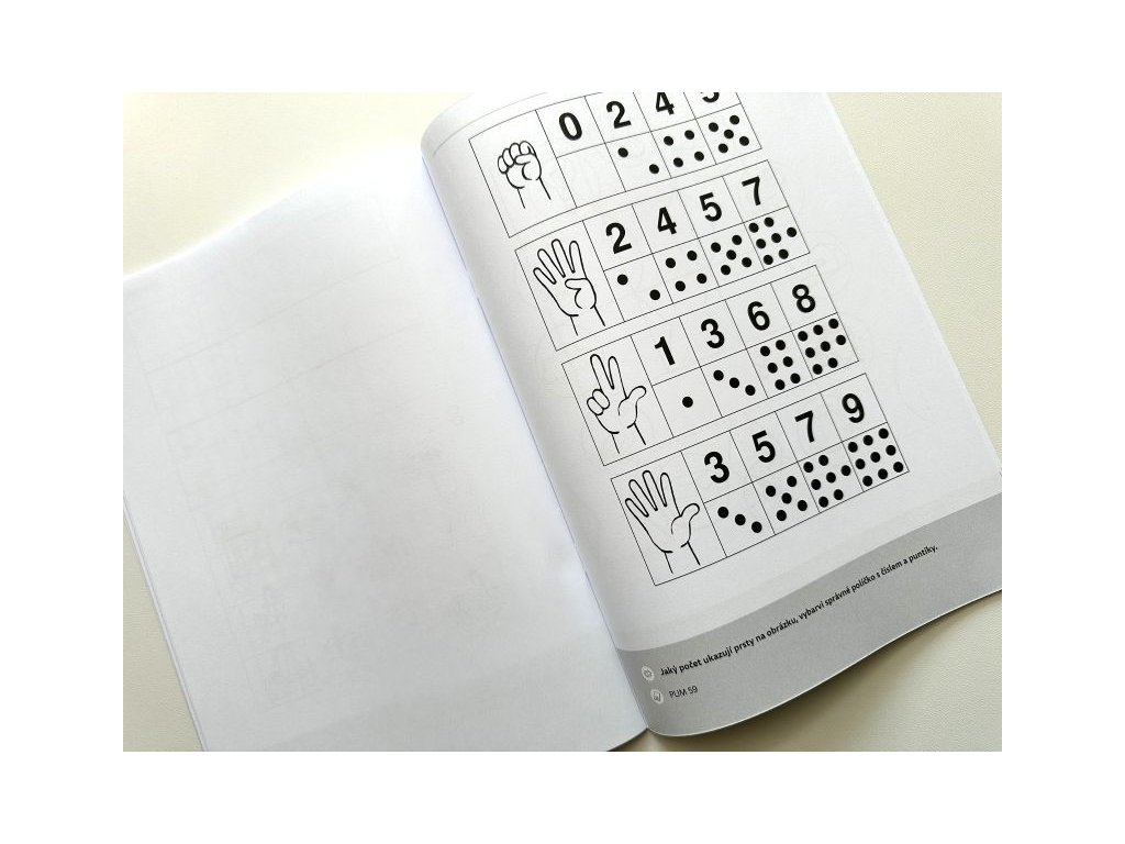 Tato publikace je určena dětem v předškolním věku od 5 do 7 let.Jeho cílem je rozšířit dětem obzory v oblasti matematických představ, které je třeba rozvíjet již před nástupem školní docházky. Obsahuje 38 pracovních listů se cvičeními, které zábavnou formou rozvíjejí předmatematické představy- počítání na prstech v oboru 1 až 10, základní geometrické tvary, posloupnosti – kdo je první, poslední, uprostřed.