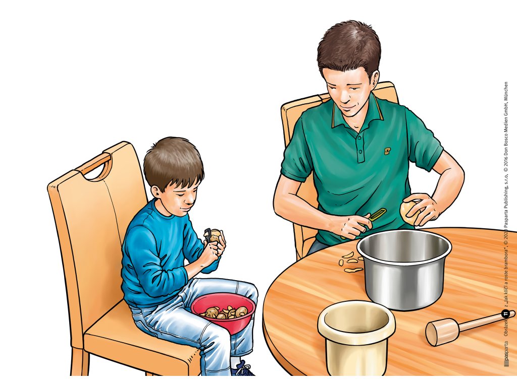 Pavlík s tatínkem chtějí vědět, jak rostou brambory. Jednoduše zahrabou několik hlíz do květináčů. Pavlík se každý den chodí dívat, co je nového. Dlouho není nic vidět. Pak ale objeví mladý výhonek. Konečně se něco děje! Lístky se pořád zvětšují. Pak jednou rozhrne hlínu – a čeká ho radostný objev.