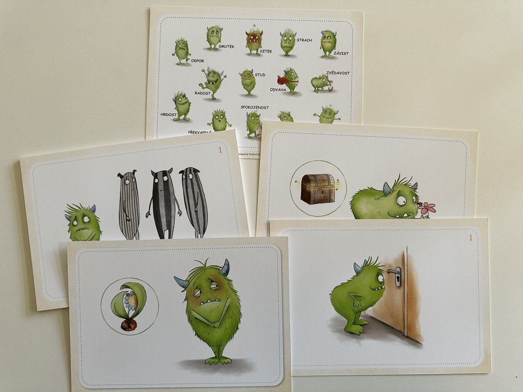 Pro některé děti není snadné správně pojmenovat své pocity. Pomoci jim v tom mohou karty emocí, jejichž hlavním hrdinou je zelená příšerka Eddie. Jasně dává najevo, jak se cítí. Jednak svým postojem, gesty a mimikou, ale i obrazným vyjádřením toho, jak daný pocit prožívá uvnitř. Eddieho řeč těla i vnitřní prožívání spolu s kartami se scénami nabízejí mnoho podnětů k rozhovorům s jednotlivcem i k diskusi v dětské skupině. Hravou formou se tak u dětí posiluje jejich emocionální kompetence. Rozpoznávají situace, ve kterých Eddie cítí lásku, závist nebo spokojenost, a mohou tyto situace porovnat s vlastní zkušeností.