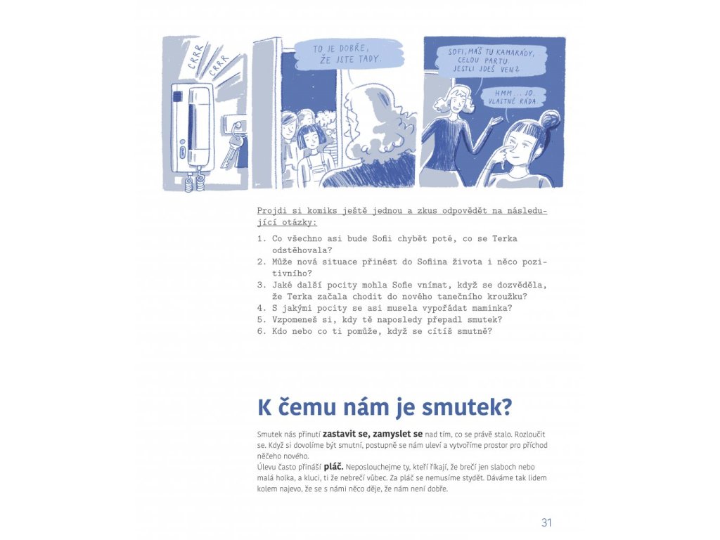 V knize se budou setkávat se skupinou kamarádů, poznají je v různých situacích a mohou pozorovat, jak se v těchto situacích budou chovat a cítit. Mohou pak porovnat své zkušenosti a vybavit si chvíle, kdy se cítili podobně. Najdou zde i tipy, jak se s danou emocí vyrovnat, např. jak překonat strach, jak se uklidnit, jak si uvědomit, co všechno mám rád/a apod. Seznámí se také s názvy podobných pocitů a obohatí si tak slovní zásobu.