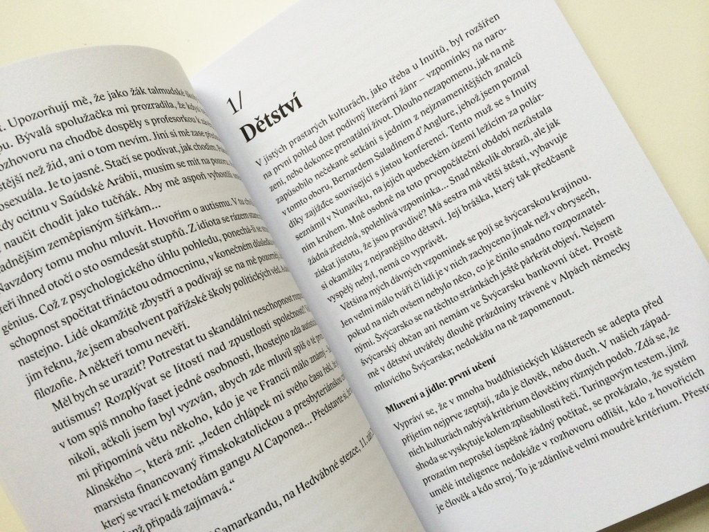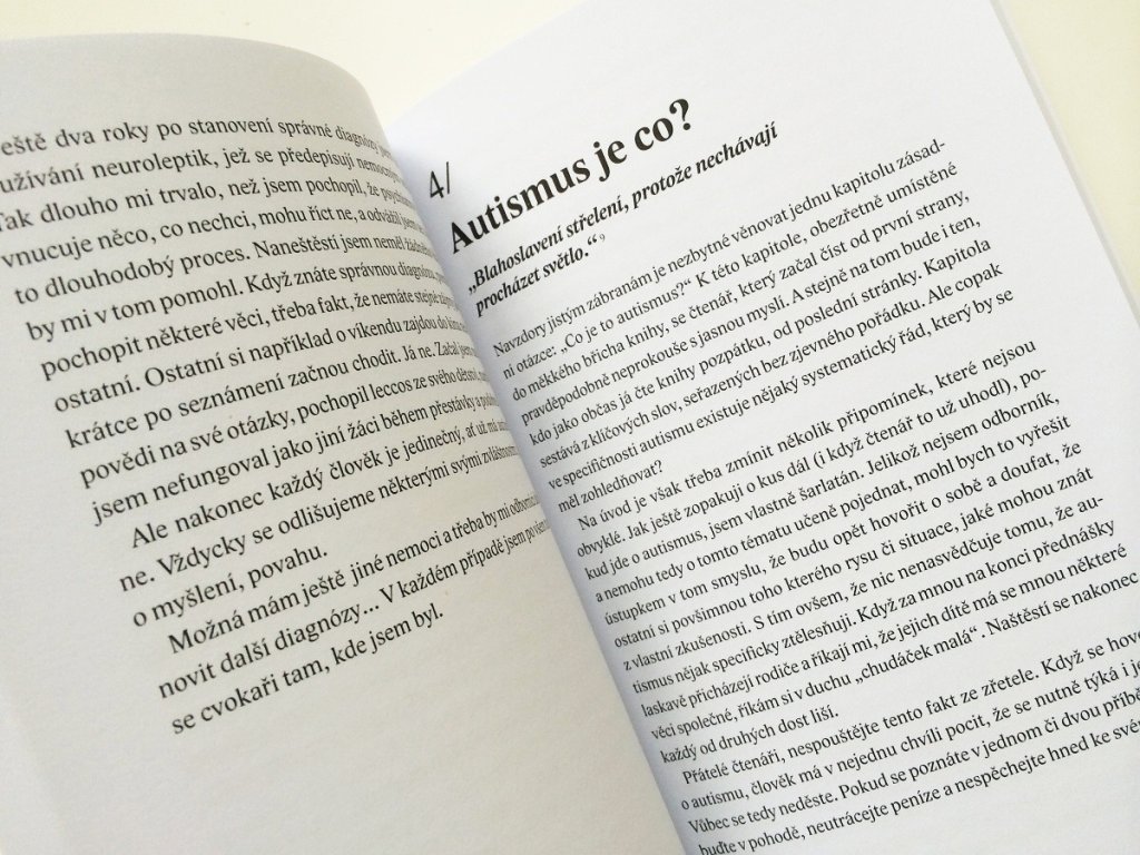 „Josef Schovanec vypráví svůj životní příběh, unikátní a zároveň lidem s autismem a jejich rodinám povědomý. Příběh jedince, kterého od dětství provázela nejistota, nepochopení a izolovanost. Ač by mohl být jako vysokoškolsky vzdělaný člověk považován za úspěšného, musel čelit množství narůstajících psychických problémů. Teprve když zjistil, co je příčinou jeho odlišnosti, byl schopen rozvinout svoje nadprůměrné schopnosti.“ z předmluvy Kateřiny Thorové, Ph.D.