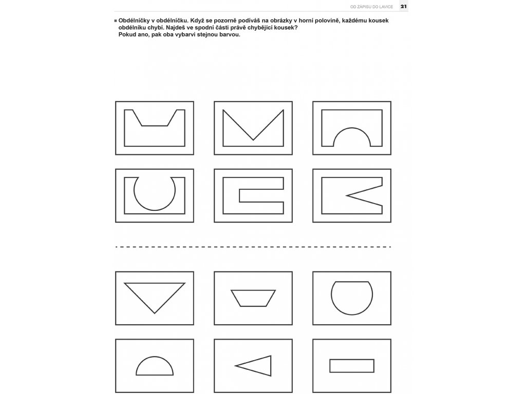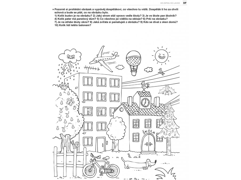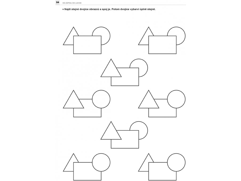 Další díl edice Od zápisu do lavice volně navazuje na předchozí sešity a obsahuje 40 pracovních listů se cvičeními, která zábavnou formou rozvíjejí zrakové vnímání. Zraková percepce je souborem schopností, které bude dítě v reálném životě potřebovat k tomu, aby bylo úspěšné ve školním procesu v dovednostech, jakými jsou čtení, psaní, kontrola veškeré samostatné práce. Tyto dovednosti jsou jakýmsi pilířem, který se podílí na kvalitě čtení ve školní výuce. Optimální rozvoj zrakového vnímání, rozlišování, analýzy a syntézy či paměti umožní dítěti i v procesu učení mj. rozlišovat detaily, soustředit se na konkrétní tvar či předmět a umět jej rozpoznat mezi ostatními. Dále vyhledávat rozdílné či stejné obrázky, rozpoznat je podle polohy, skládat obrázky z různých částí, rozlišovat geometrické tvary atd. Úlohy jsou koncipovány tak, aby se zároveň zapojilo co nejvíce smyslů a rozvíjela se jemná motorika i grafomotorika.