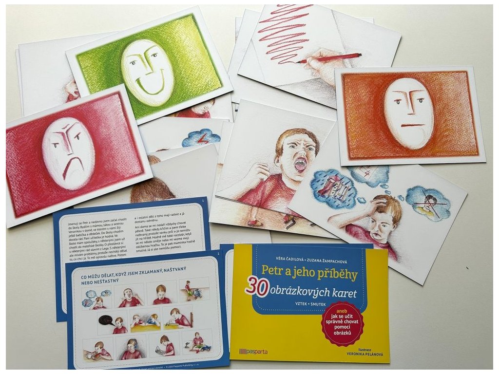 Tato sada karet nabízí modelové situace zaměřené na zvládání silných emocí – například co dělat, když jsem zklamaný, naštvaný, smutný nebo mám vztek na někoho jiného. Průvodcem dětí je hlavní postava Petr, školák v červeném tričku, který děti provází jednotlivými scénkami. Karty slouží k nácviku společensky vhodných reakcí a pomáhají dětem lépe porozumět vlastním emocím i tomu, jak s nimi pracovat v každodenních situacích.