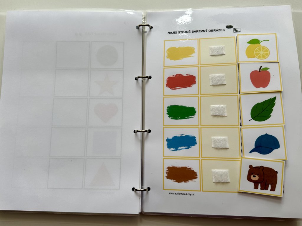 - Každý list má jedinečnou barvu, stejně jako kartičky, které k němu patří, což usnadňuje orientaci a podporuje samostatnou práci.