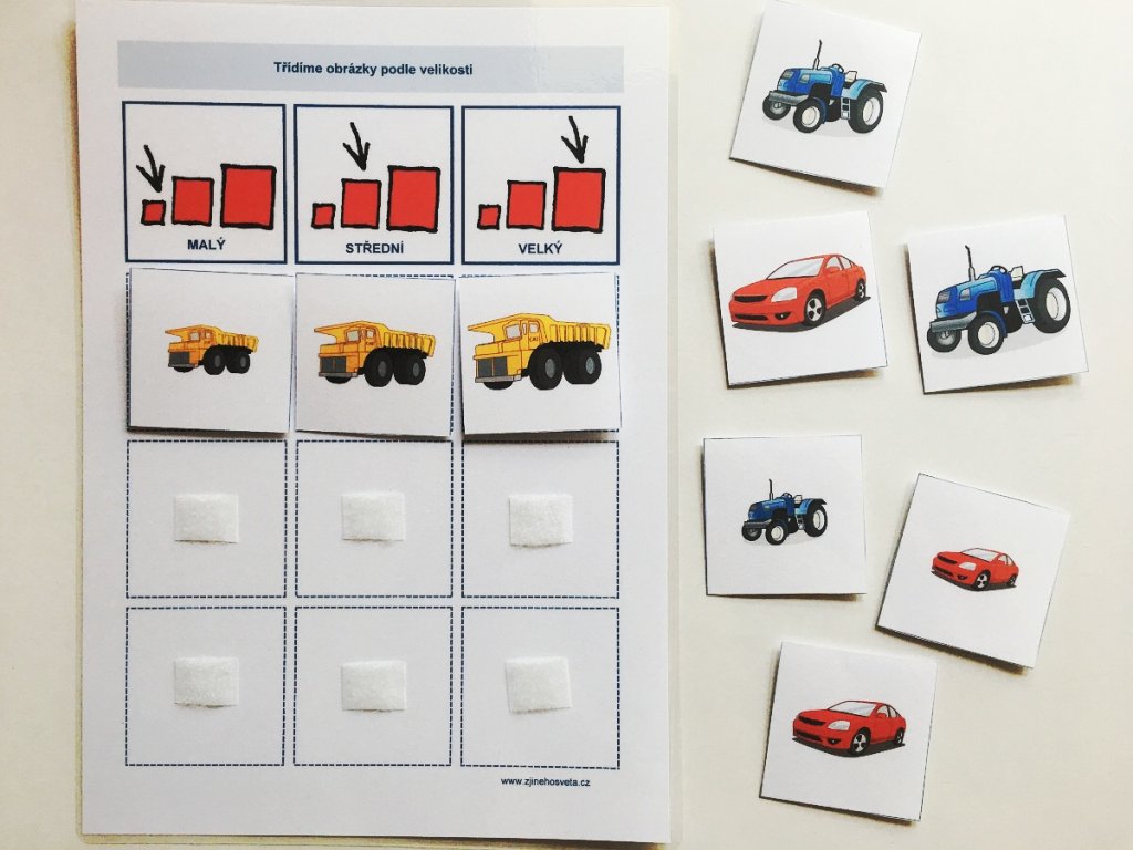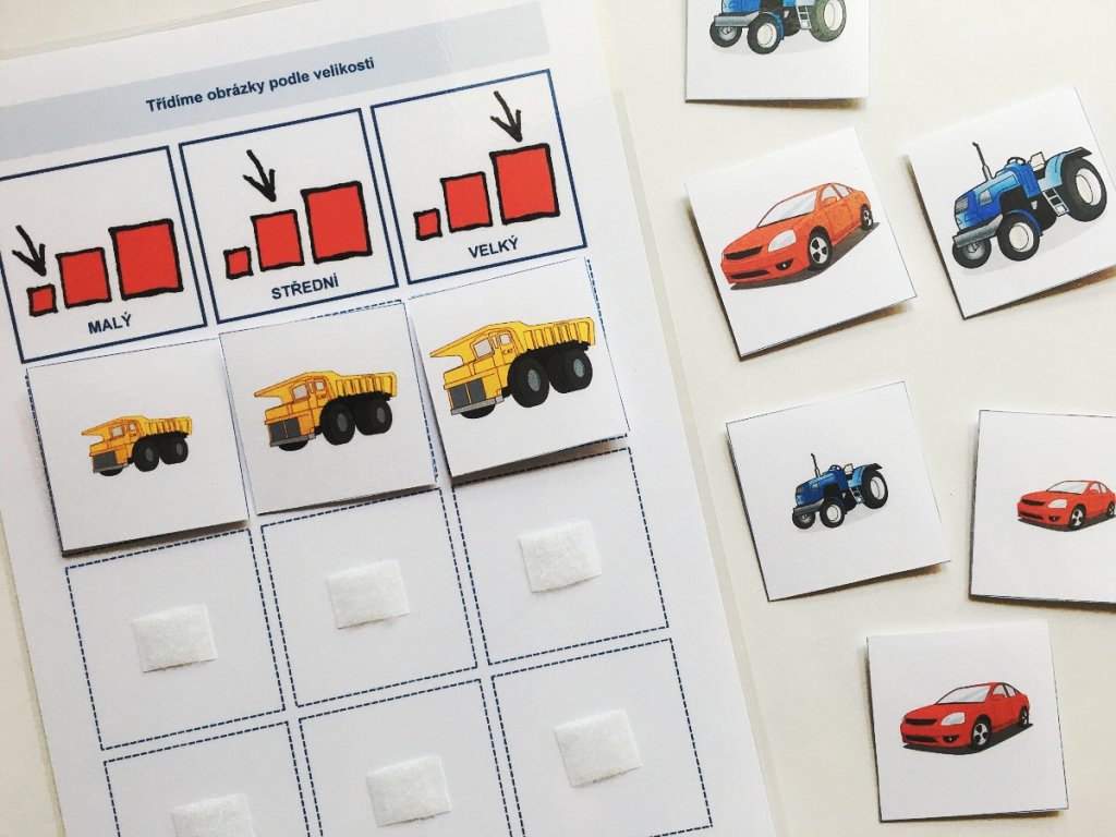 Laminovaný strukturovaný úkol pro malé děti. Jejich úkolem je roztřídit obrázky dopravních prostředků podle velikosti. Aktivita je také vhodná pro děti se speciálními vzdělávacími potřebami.