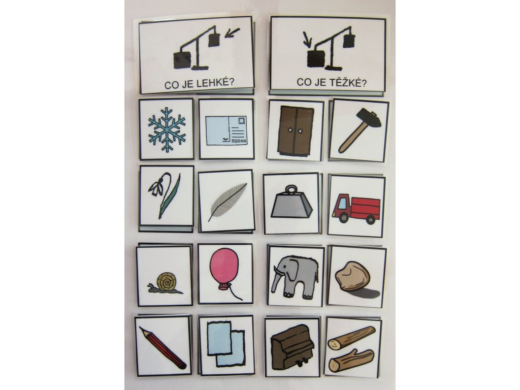 Strukturované učení dává dětem jistotu, řád, vše má své místo. Je vhodné pro děti se spec.vzdělávacími potřebami, např. autismus, dysfázie, MR a jiné komunikační poruchy. Úkolem je roztřídit obrázky podle váhy na těžké a lehké