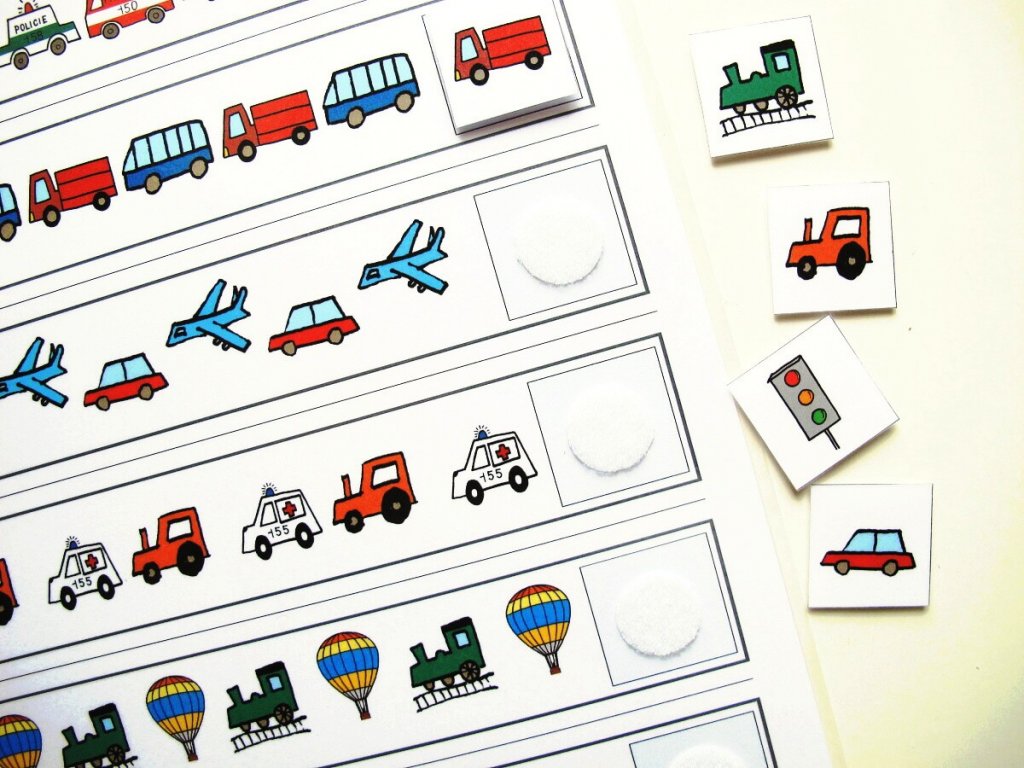 Dva strukturovné listy zaměřené na logické řady - téma doprava. Úkolem dětí je doplnit kartičky se správným obrázkem do řady dle posloupnosti. Úkoly mají různou náročnost.