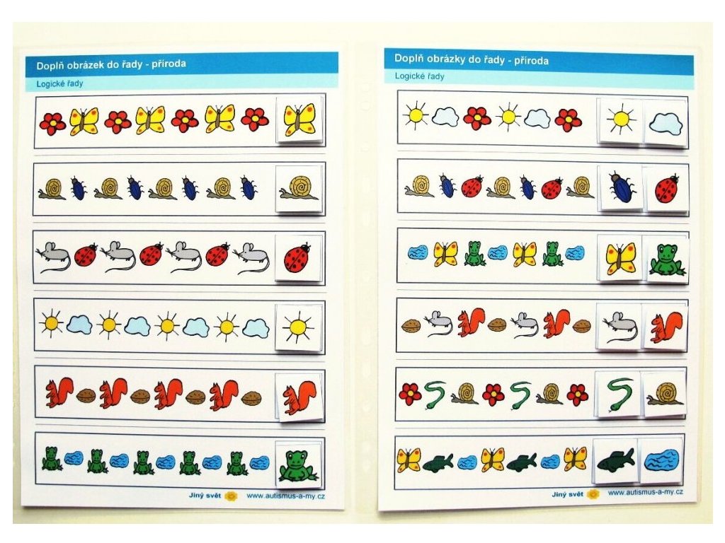 Logické řady - doprava, příroda. 4 strukturované listy. Jiný svět