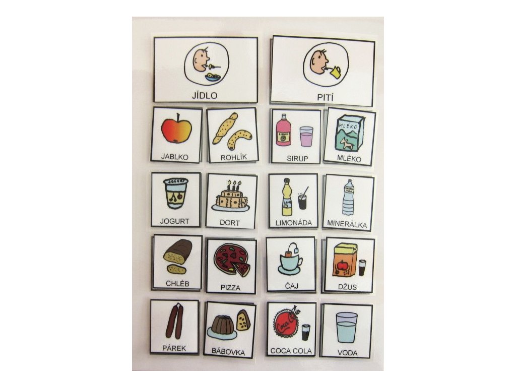 Strukturované učení přináší dětem jistotu a jasný řád – každá věc má své místo. Je doporučováno pro děti se speciálními vzdělávacími potřebami, například s autismem, dysfázií či jinými obtížemi v komunikaci.Úkolem je roztřídit obrázky do skupin - jídlo a pití