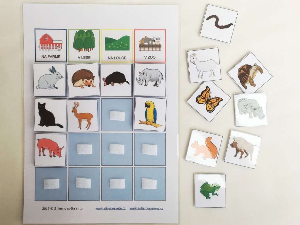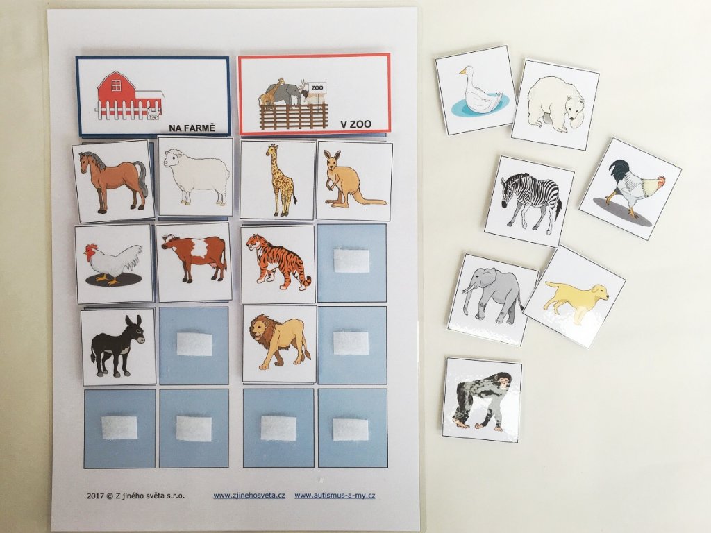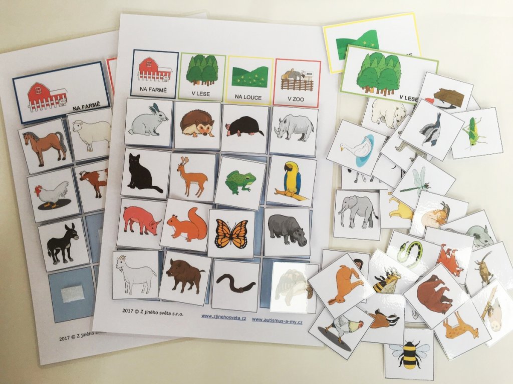 - Třídění obrázků do 4 skupin (louka, les, farma, ZOO)