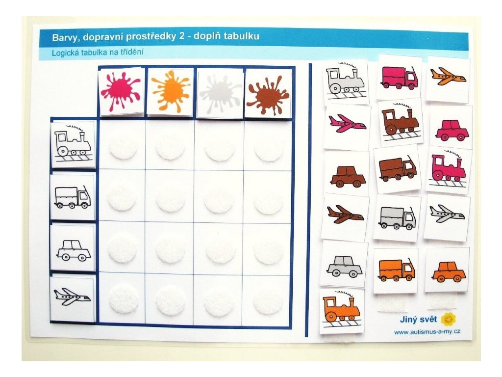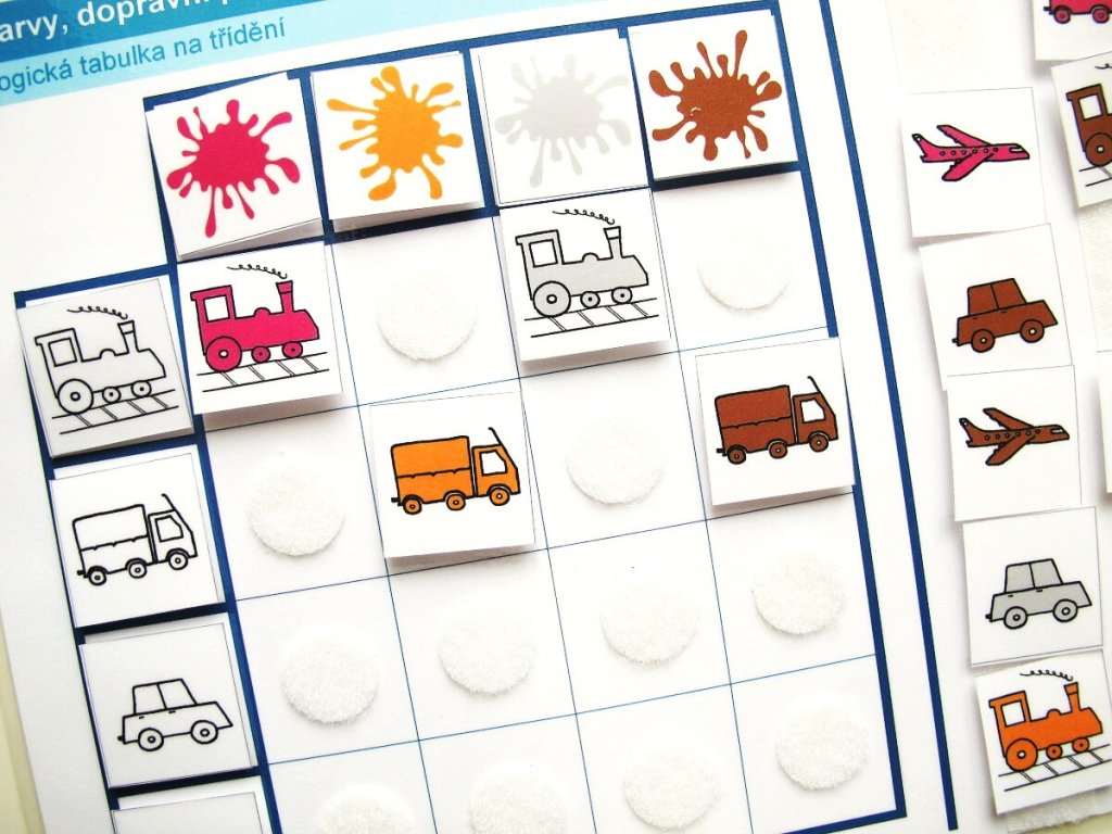Barvy - dopravní prostředky 2. Logická tabulka na třídění. Jiný svět