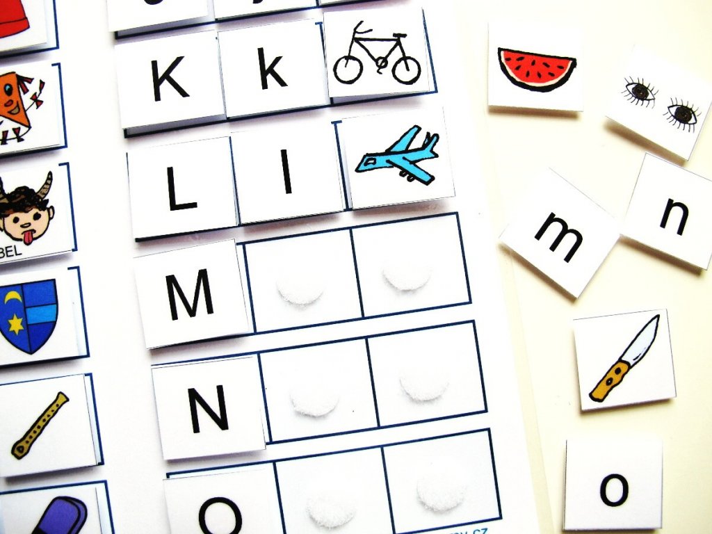Dva strukturované listy zaměřené na českou abecedu. Úkolem dětí je doplnit kartičky do tabulky dle zadání. Zadání se může měnit střídáním pořadí jednotlivých písmen a tím dětem znesnadnit případné zapamatování řešení. Je také možné úkol zjednodušit tak, že děti do tabulky doplňují pouze obrázek, nebo písmeno.