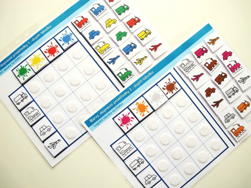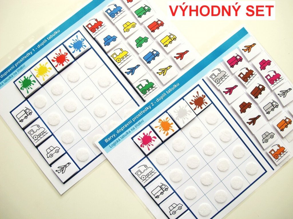 Sada Barvy - Dopravní prostředky (1 + 2). 2 logické tabulky na třídění. Jiný svět