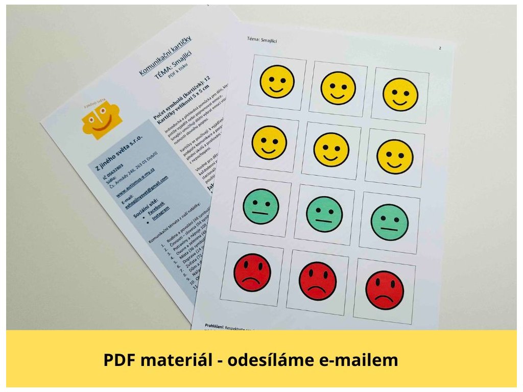 Komunikační kartičky se smajlíky jsou jednoduchou vizuální pomůckou pro děti, které mají potíže vyjádřit emoce, potřeby nebo porozumět situaci. U dětí s PAS je často přítomné doslovné vnímání a obtížné rozpoznávání emocí, proto je vizuální podpora velmi důležitá.