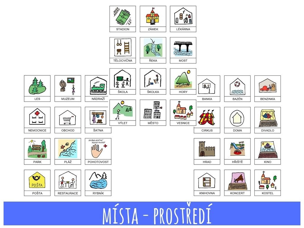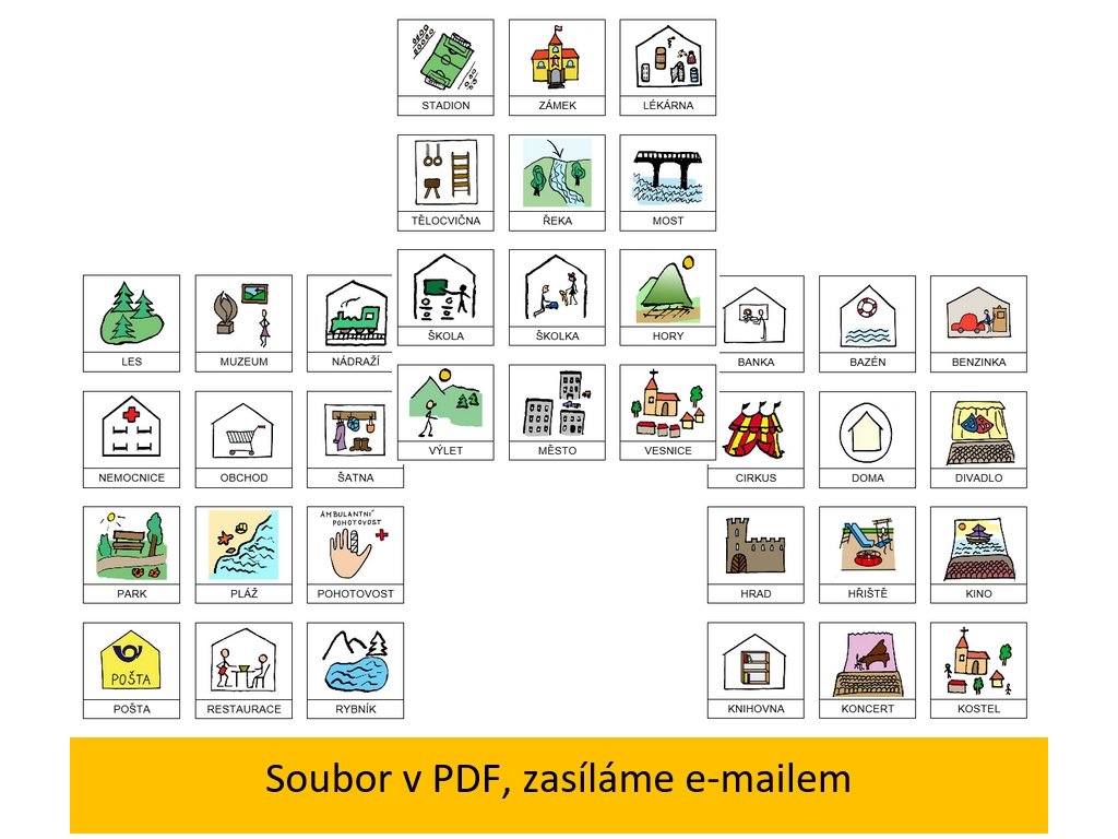 5. Komunikační kartičky - piktogramy, Místa 36 ks