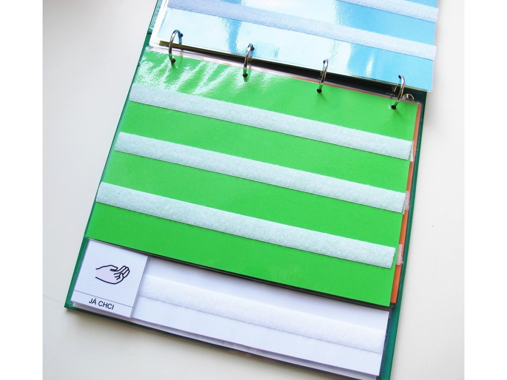 Komunikační kniha je určena pro kartičky - piktogramy. Používá se při náhradní komunikaci. Cílová skupina: diagn. autismus, dysfázie a jiné komunikační problémy.