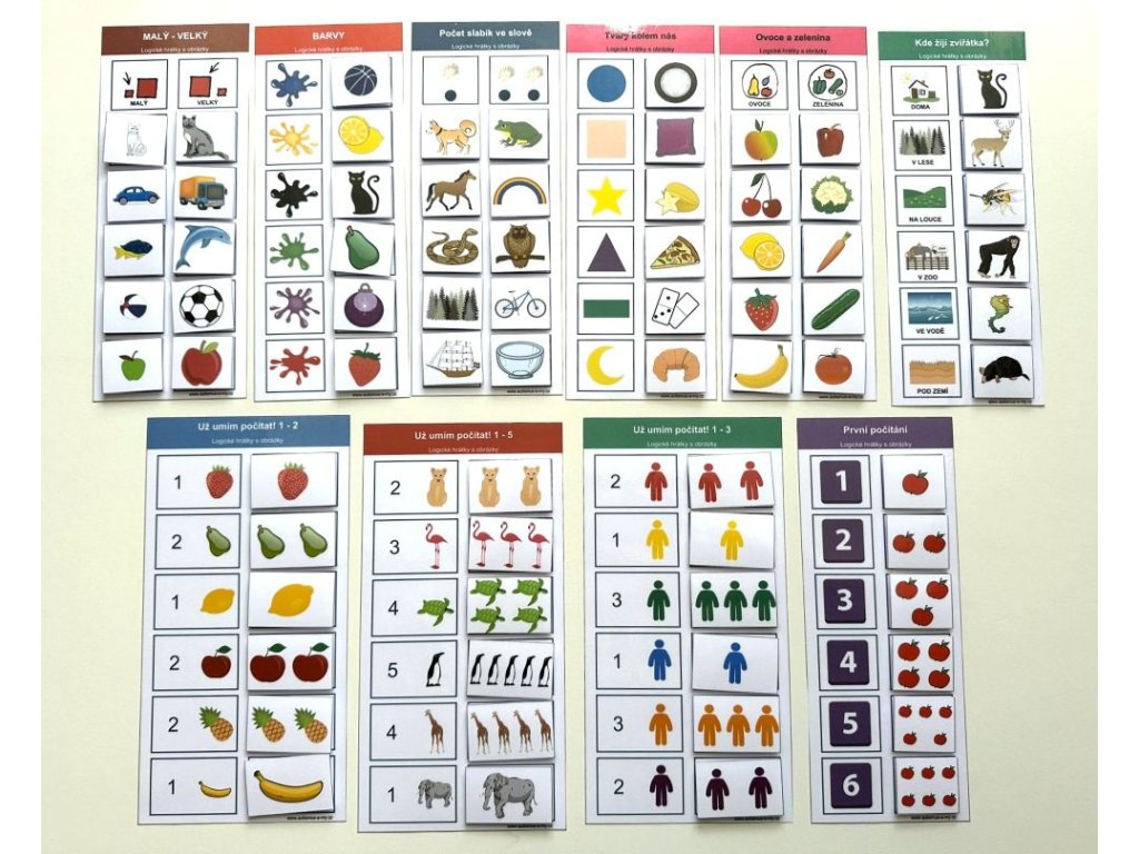 - 6 - 12 obrázkových kartiček ke vkládání do tabulky