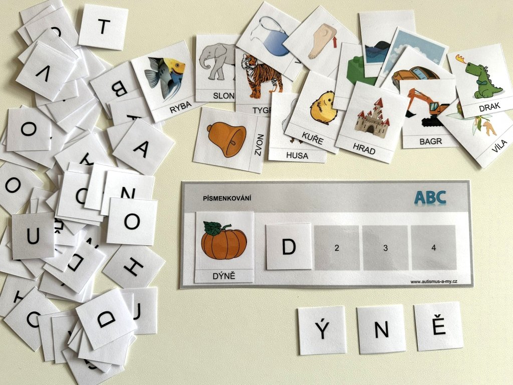 Písmenkování 1- skládání slov s vizuální podporou, 3 písmena